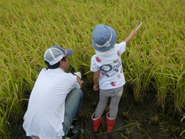 実は猪鼻の田んぼでも、稲刈りよりいきもの探しが始まっていました・・・・。
