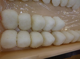 7畝の田んぼは、やってもやっても終わらない・・・。午前中の1時間半で2畝ほどして、昼食休憩。新米でにぎったおにぎりをみんなで食べました。
