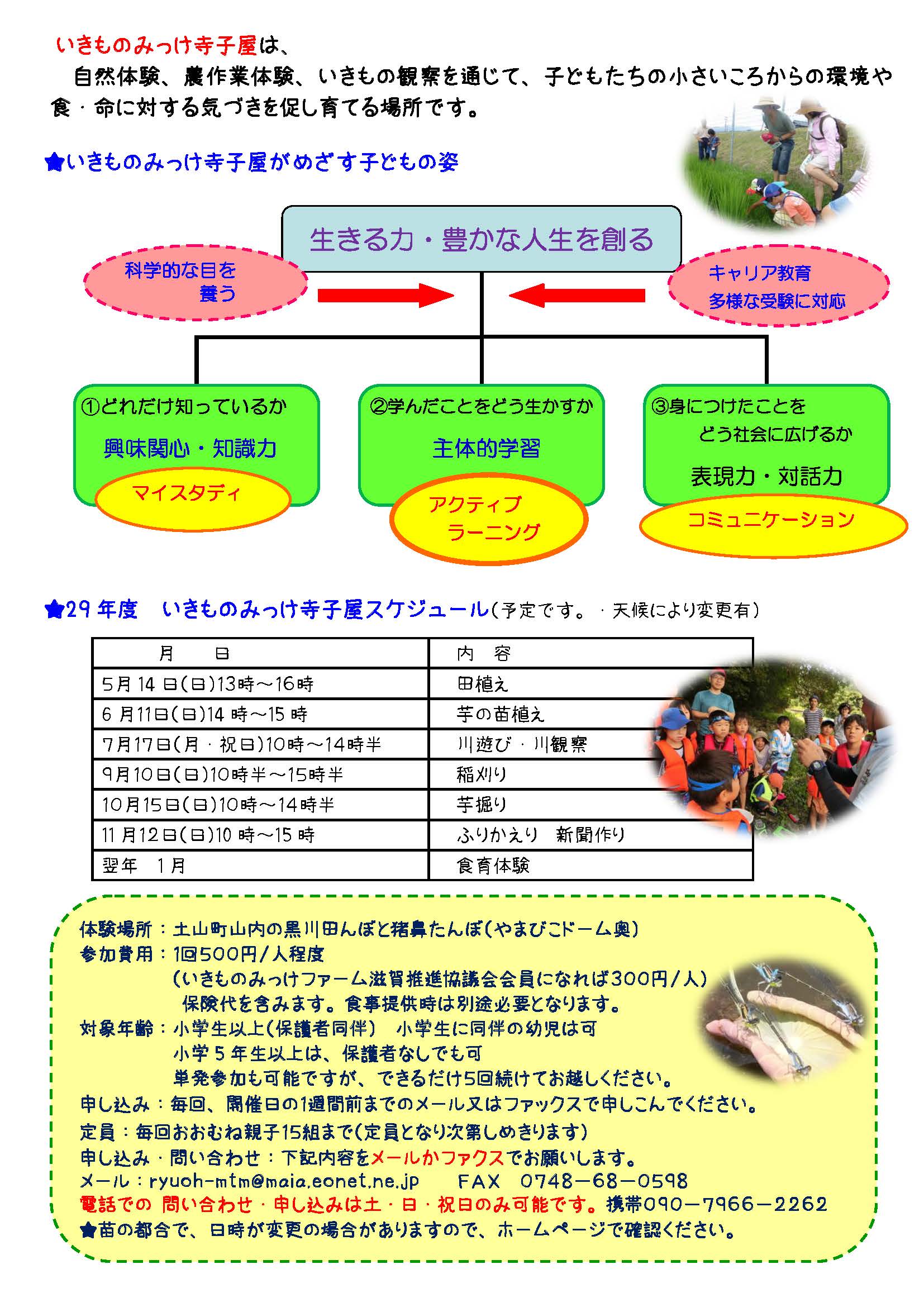 いきものみっけファーム滋賀 里学部は、「いきものみっけ寺子屋」として活動しています